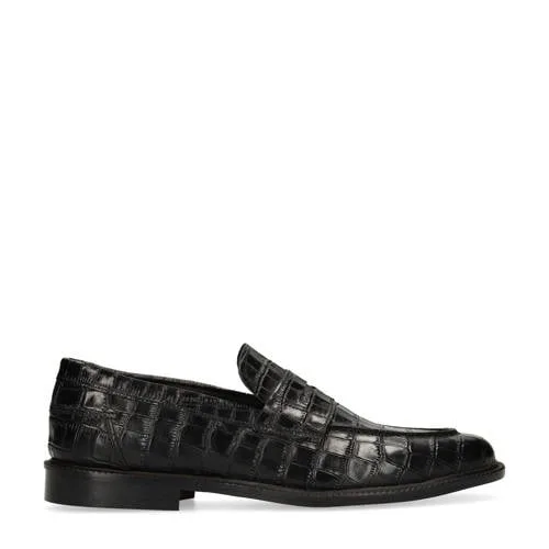 Black Label leren loafers met croco print zwart