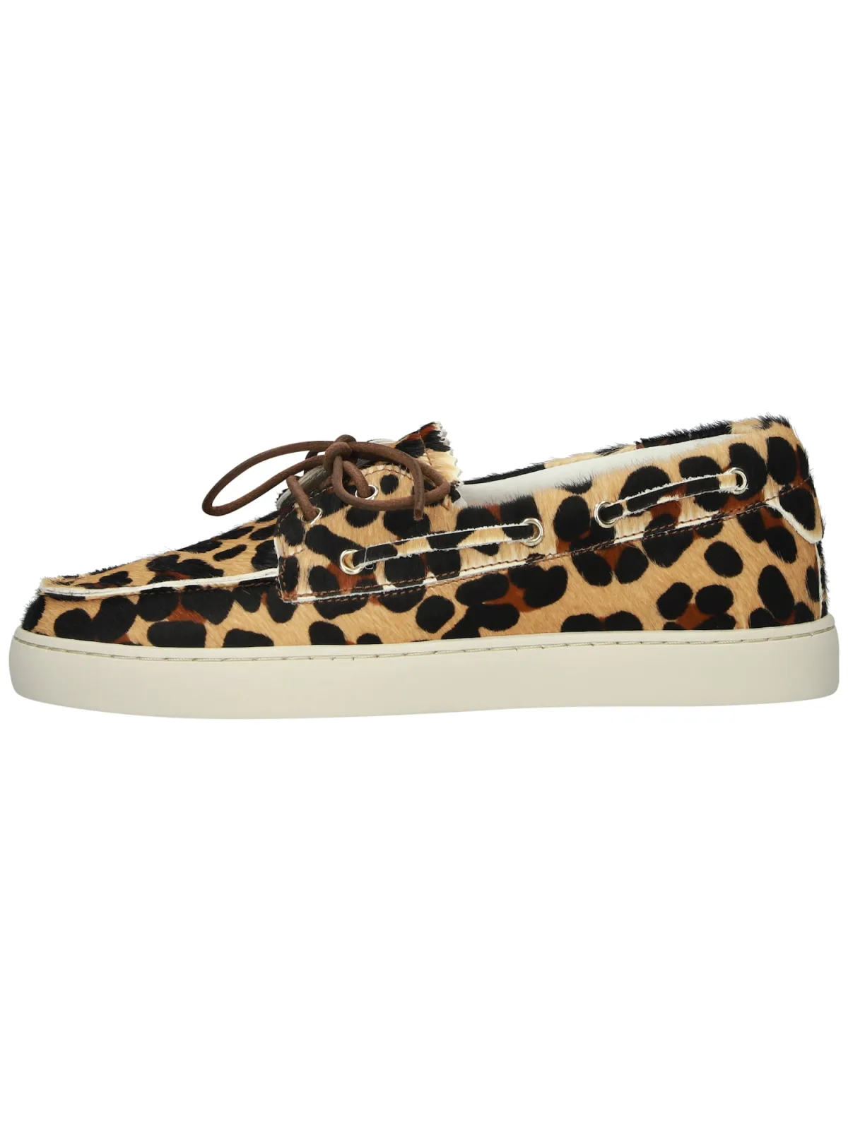 Design: Versterkte hak; Type sluiting: Snoersluiting; Materiaal: Leer; Motief: Dierenprint; Materiaal: Suède; Schoenneus: Ronde neus; Extra's: Flexibele zool; Hakhoogte: Platte hak (0-3 cm)