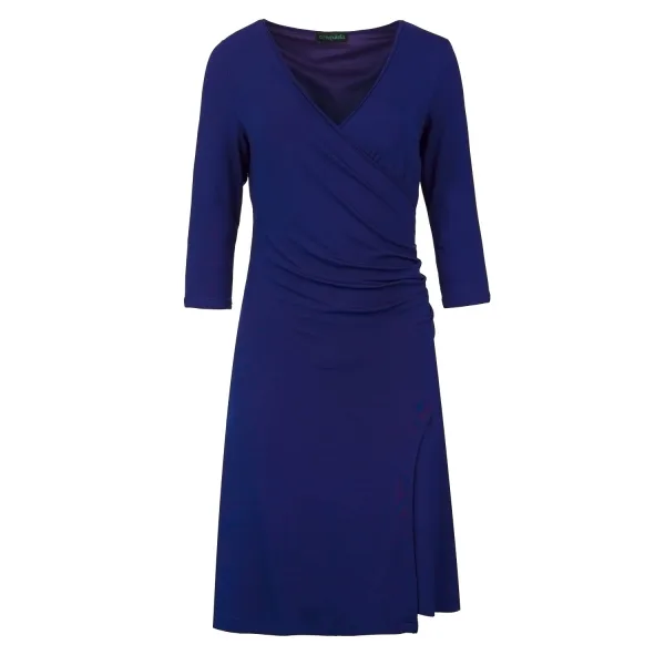 - Bij to-be-dressed.nl kun je blauw elektrisch imitatiewikkeljurk van duurzame stof kopen voor slechts €75,45