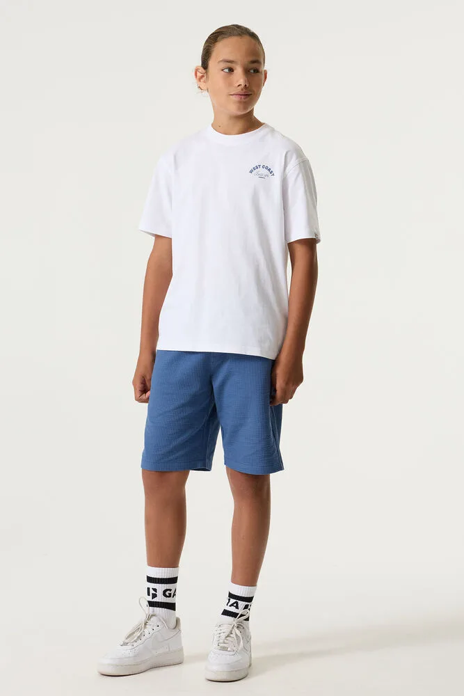 Short in een seersucker stof. Deze short heeft een reguliere taille, rechte pijpen en een relaxed fit. Dit item is gemaakt van 97% katoen en 3% elastaan. Better Cotton is een initiatief dat zich wereldwijd inzet voor betere omstandigheden in de katoenindustrie.