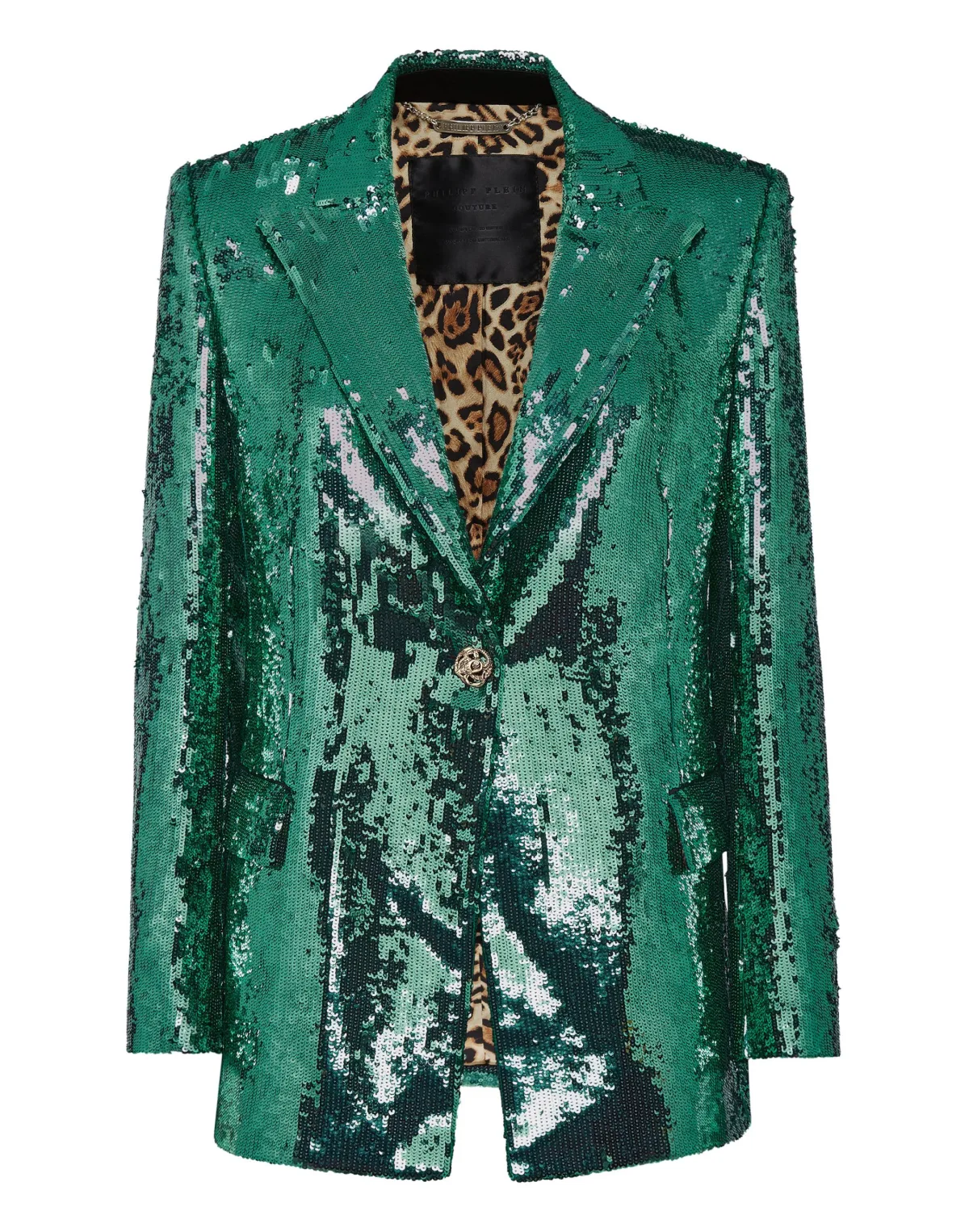 Ben je een fan van glamour? Kijk dan eens naar deze blazer met één knoop. Hij is gemaakt van een met lovertjes ingelegde stof. Twee zakken met klep en de hoge revers zijn slechts enkele van de details die het geheel extra flair geven. Voering van gemêleerde stof.