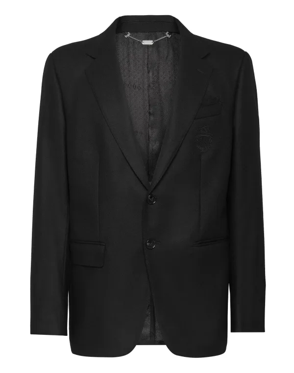 A detail is all you need to make a difference. Check out this precious fabric two button blazer and discover the secrets of elegance. Stretch cashmere Color matching embroidered Crest on the left chest Logoed buttons Two flap pockets Single vent Inner lining