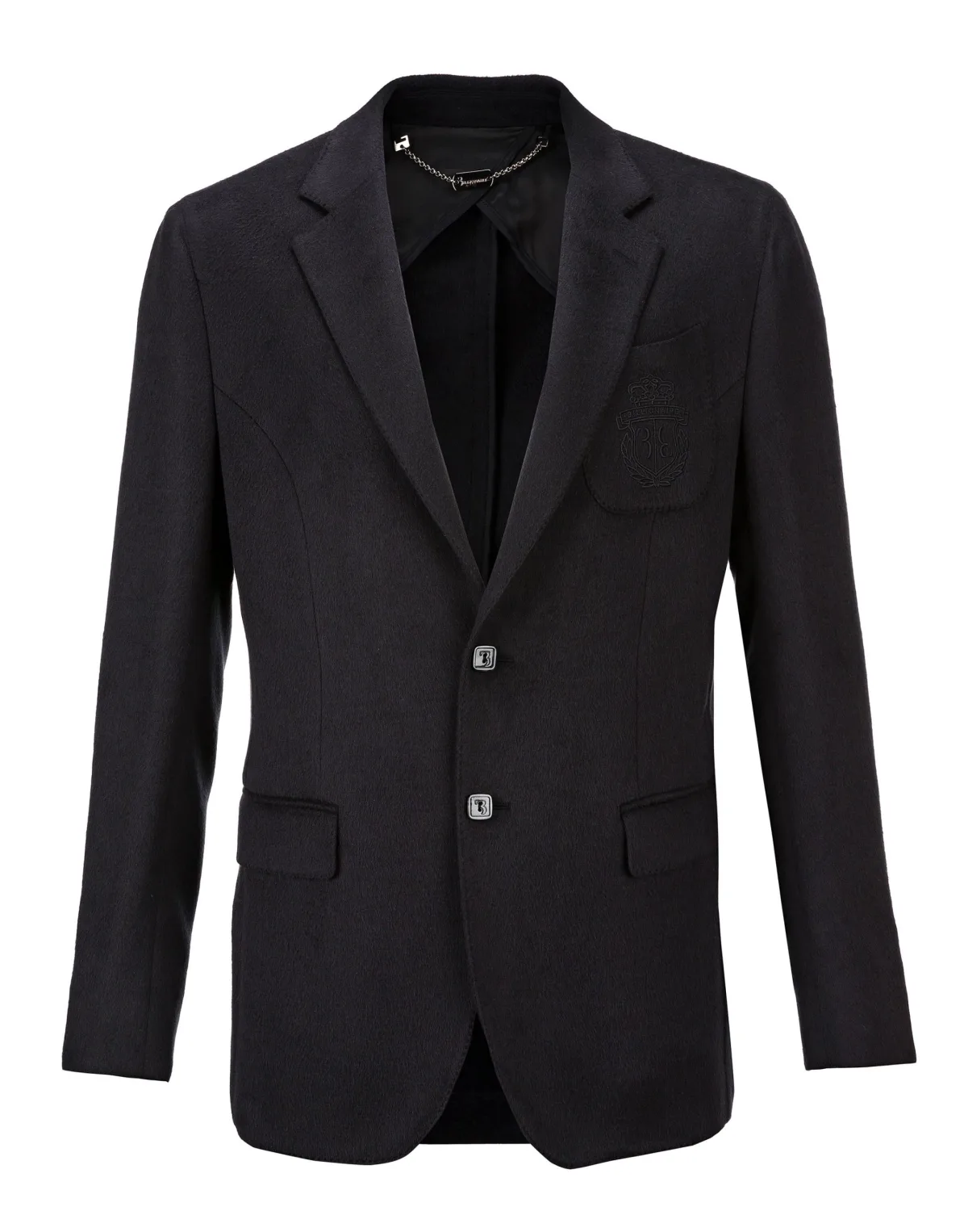 To enjoy your special events with a dash of originality this evening jacket is just what you need. It is made of woollen felt with a jaquarded damask pattern. The jacket also features two button fastening. Two flapped pockets and a breast pocket with the embroidery of the Maison's emblem. Mother-of-pearl buttons. Two slits at back. Inner half-lining. Fit: Regular.