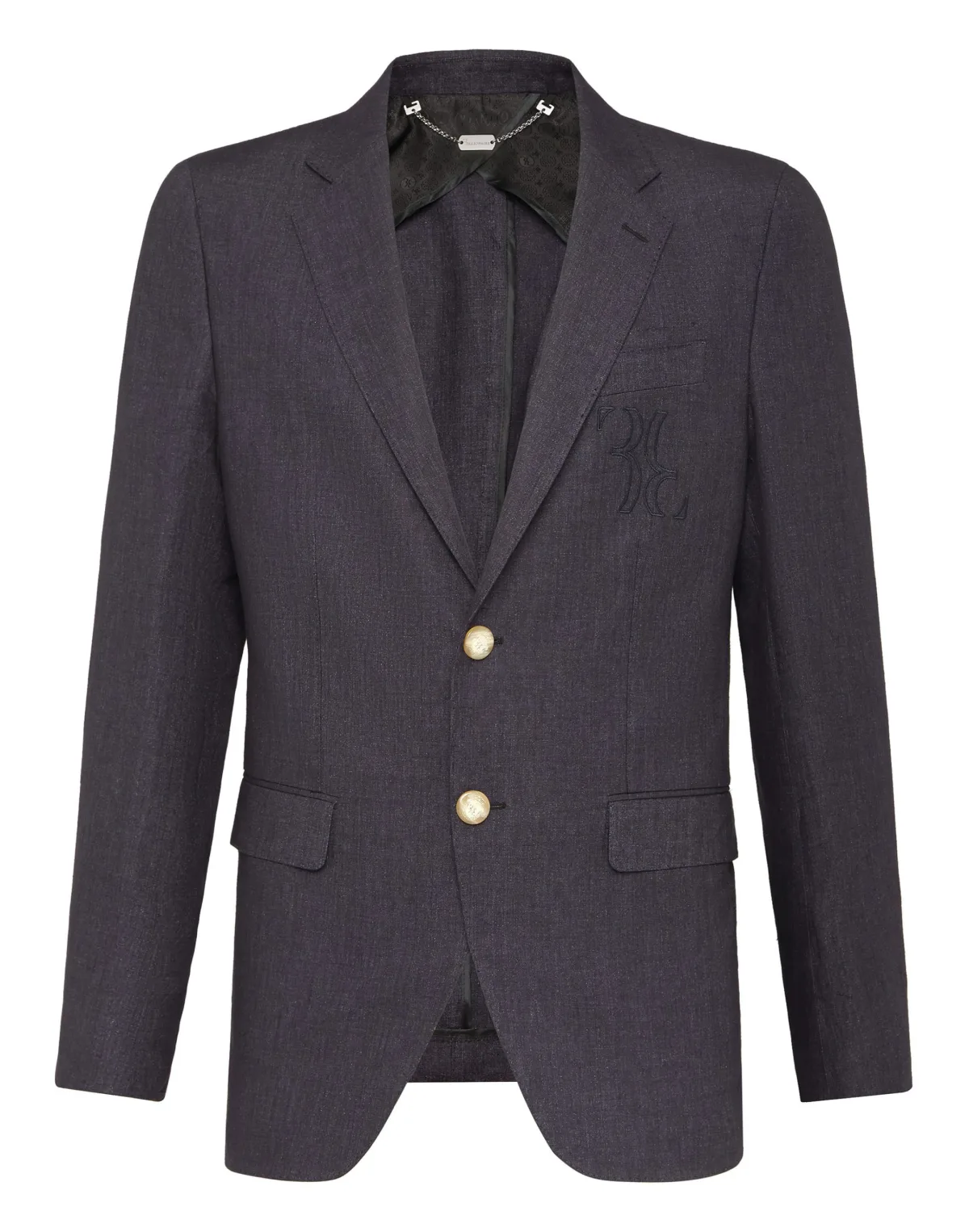 Classic and sporty, the pure linen jacket is a passe-partout that you need to have in your wardrobe. This two-button version features all the basic elements, including the breast pocket. Two flapped pockets. The brand’s monogram is embroidered at left chest. Metal buttons are decorated with the logo in relief. Two slits on the back. Unlined. Fit: Super Slim.
