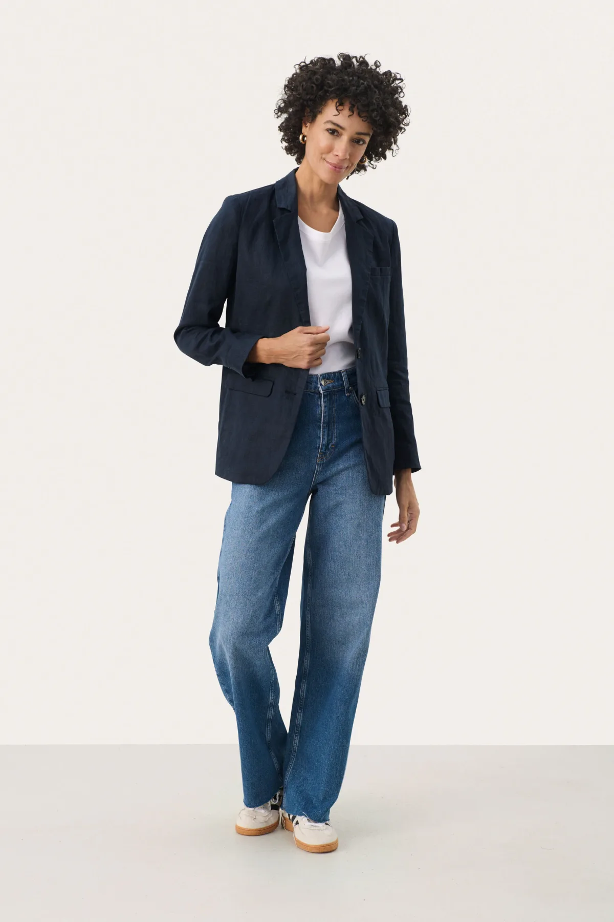 Deze blazer kenmerkt zich door een recht silhouet, klassieke reverskraag, en een sluiting met twee knopen. Flapzakken en lange mouwen zorgen voor een verzorgde uitstraling. Zachte, gladde look.