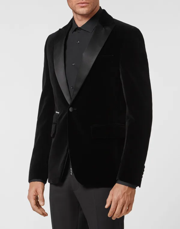 Ga je voor een glamourlook? Dan raden we je deze katoenen fluwelen avondblazer met één knoop aan, met de iconische pailletten Skull&Bones geborduurd op de rug. Ontdek onze zorg voor details, zoals de satijnen details. Klepzakken. Dubbele opening. Satijnen voering met logo.