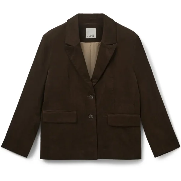 BlazerCasual snitEenvoudige knoopsluiting met knoopGekartelde reversVeloursPaspelzakken met kleppenSplits aan de achterkantManchetten met drie knopenStijl nr. S253354Kleur: DonkerbruinKwaliteit: 100 % KatoenAfmetingen: StandaardWasinstructies: Alleen chemisch reinigen
