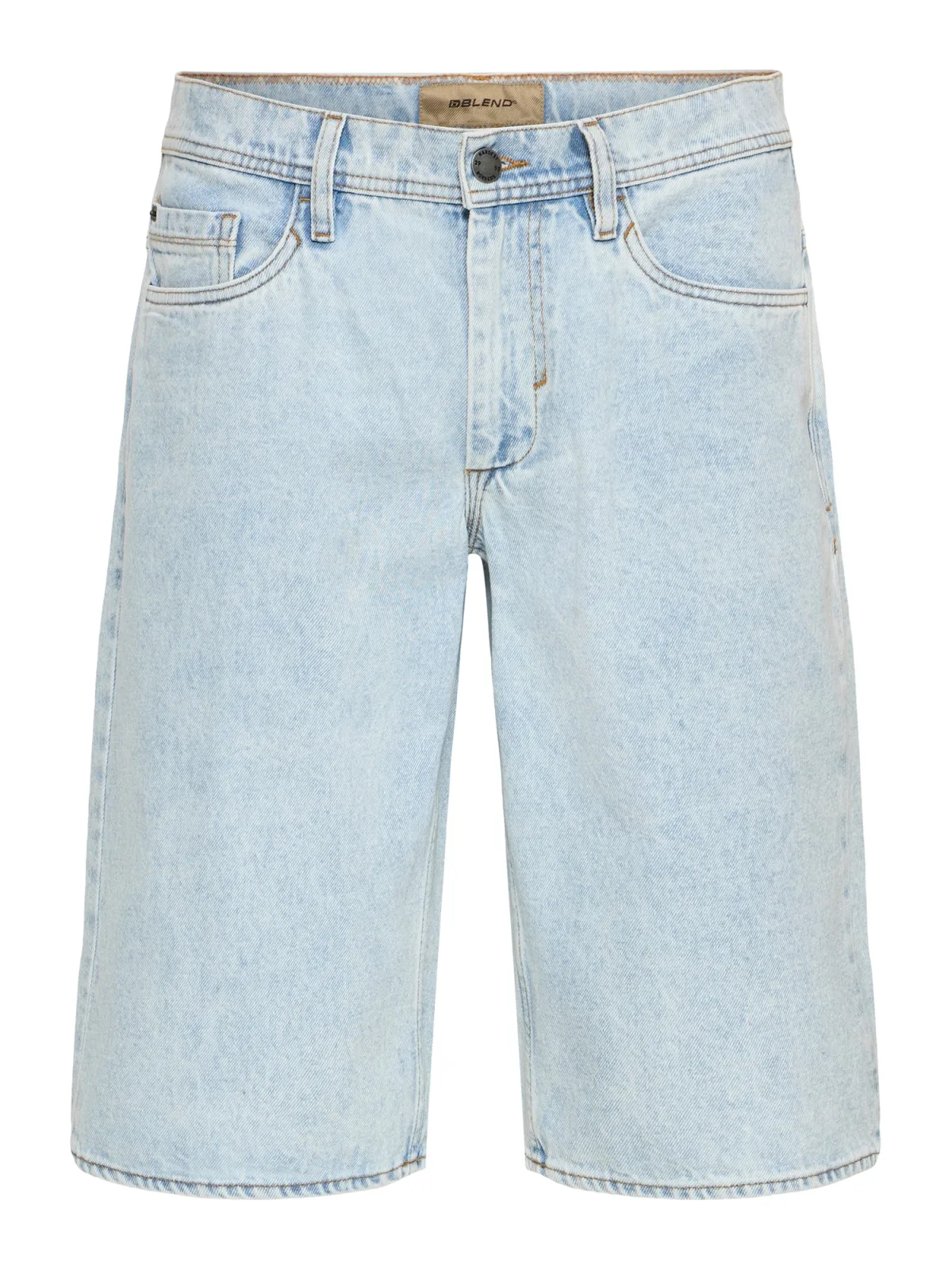 Design: Ritssluiting, 5-pocket-style; Type sluiting: Ritssluiting; Materiaal: Denim; Motief: Effen; Extra's: Contrasterende naden, Vaste grip, Riemlussen; Wassing: Blauw denim; Lengte: Knielengte; Pasvorm: Loosefit