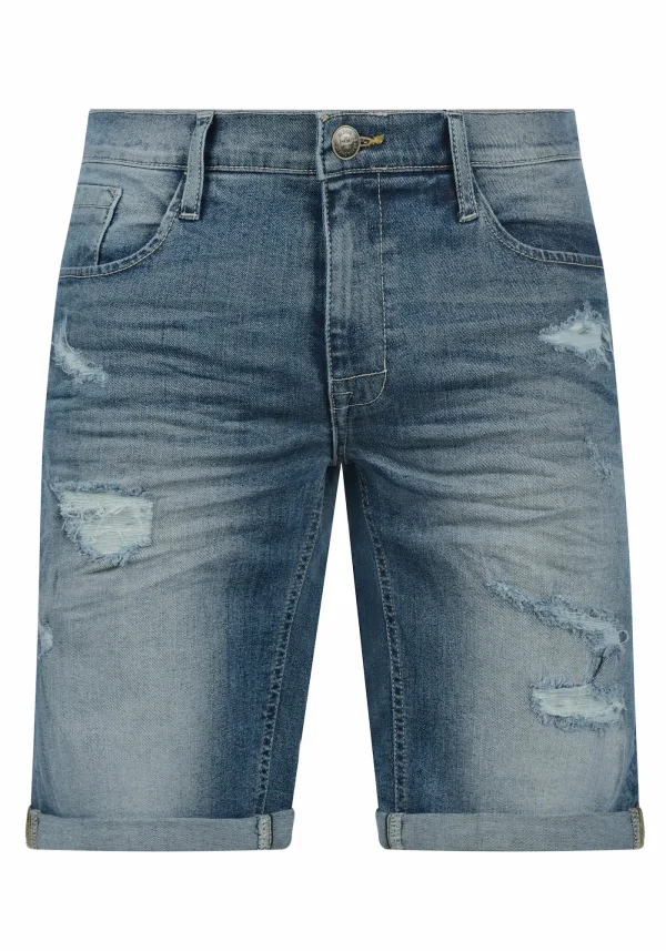 Design: Achterzak; Materiaal: Denim; Motief: Effen; Extra's: Used-look; Wassing: Blauw denim; Lengte: Knielengte; Pasvorm: Regular