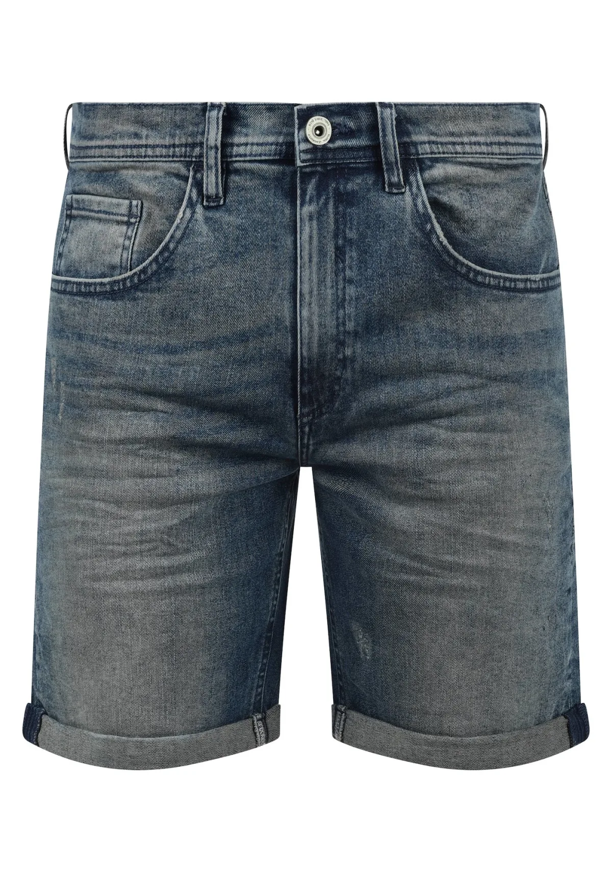 Design: Omgeslagen zoom, 5-pocket-style; Type sluiting: Knoopsluiting; Materiaal: Denim; Motief: Effen; Extra's: Used-look, Gewassen effect; Wassing: Blauw denim; Lengte: Knielengte; Pasvorm: Regular