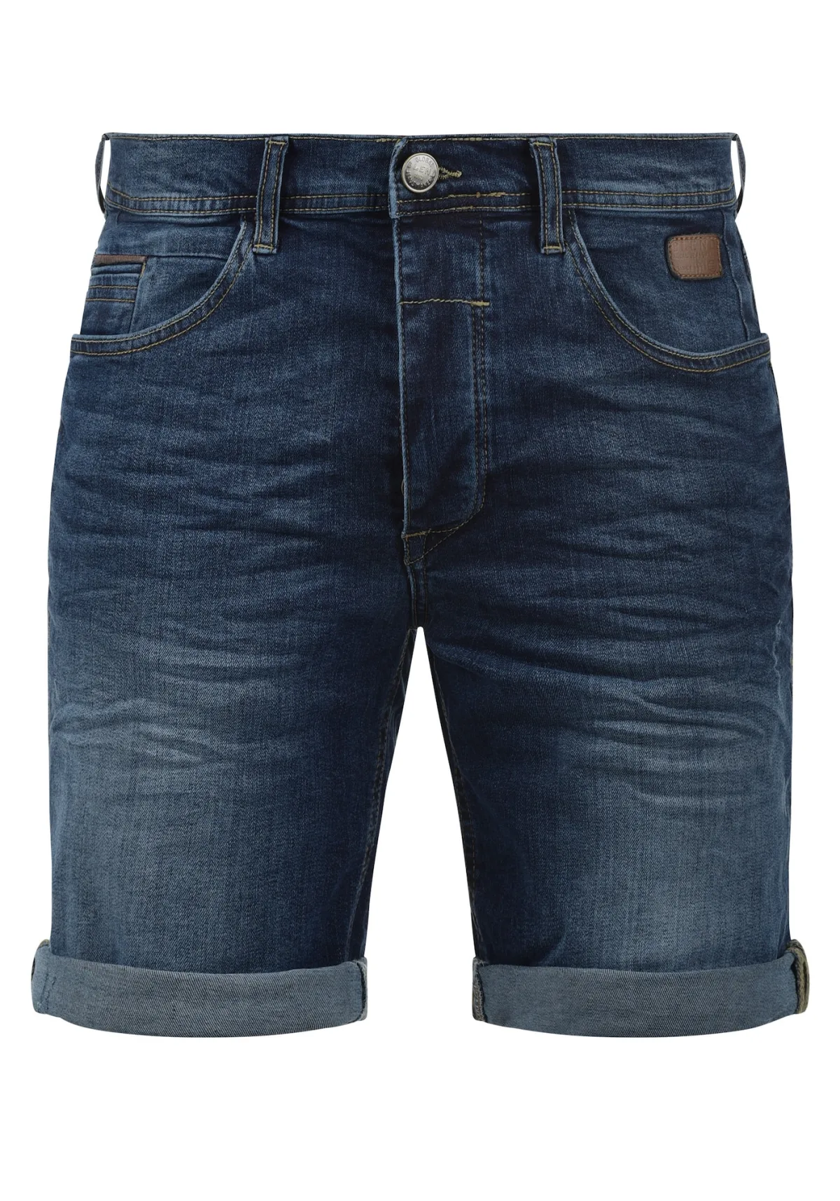 Design: 5-pocket-style, Muntenzak; Type sluiting: Ritssluiting; Materiaal: Denim; Motief: Effen; Extra's: Contrasterende naden, Label patch/label flag, Riemlussen; Wassing: Blauw denim; Lengte: Knielengte; Pasvorm: Slimfit