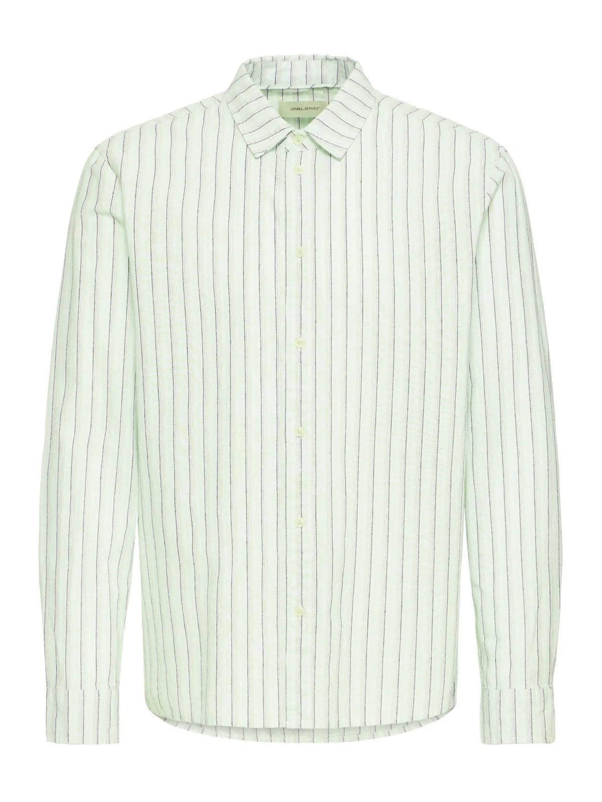 BLEND Overhemd ‘ BHAban Linen Mix Striped ‘ groen / wit