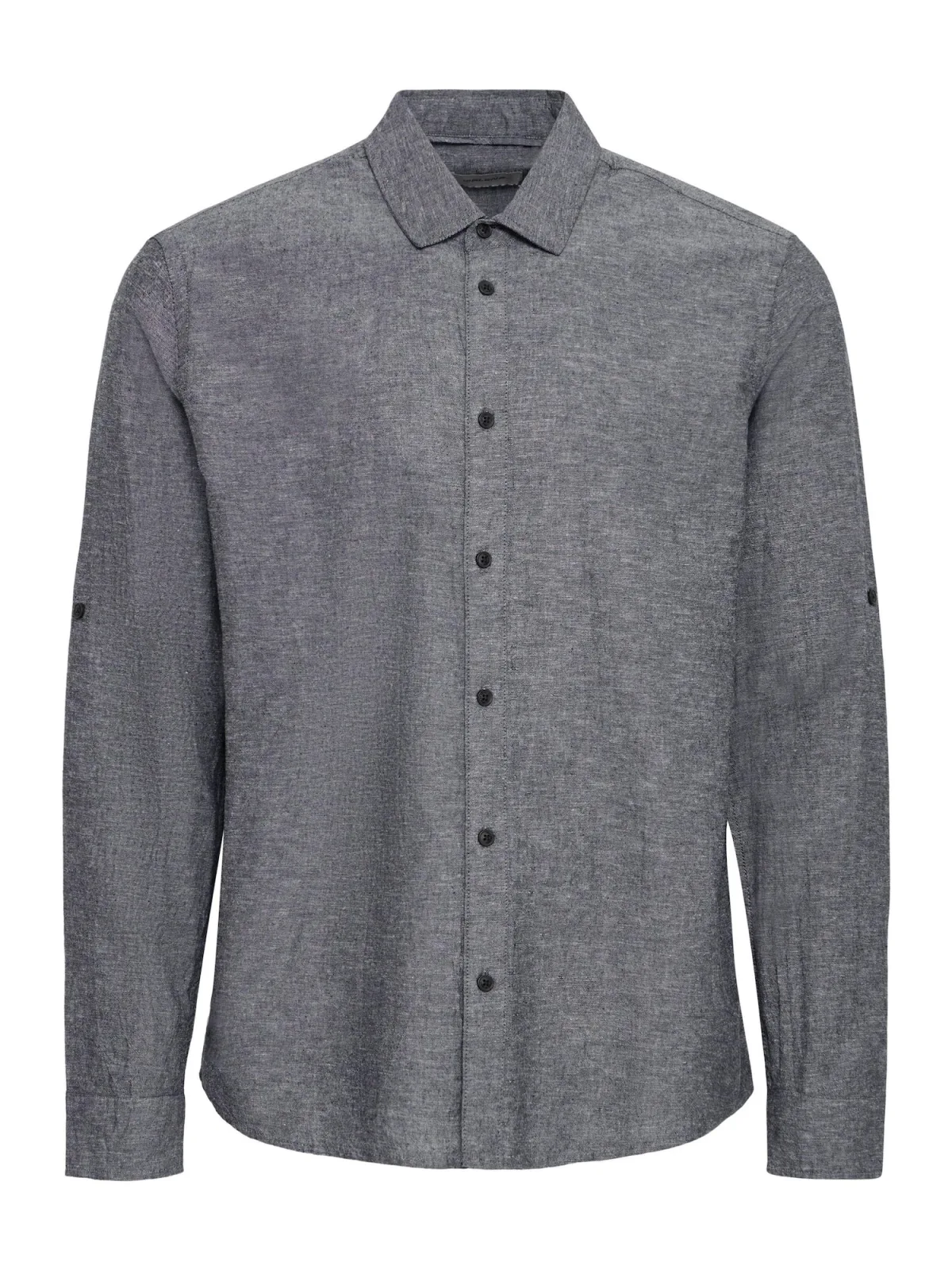 BLEND Overhemd ‘ BHAban Slub Linen Mix ‘ zwart