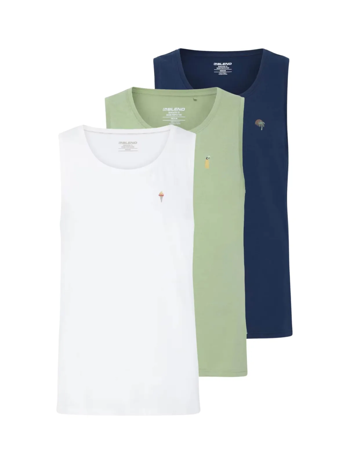 Specificaties: BLEND Shirt ‘ BHEmbo 3 Pack ‘ donkerblauw / lichtgroen / wit
