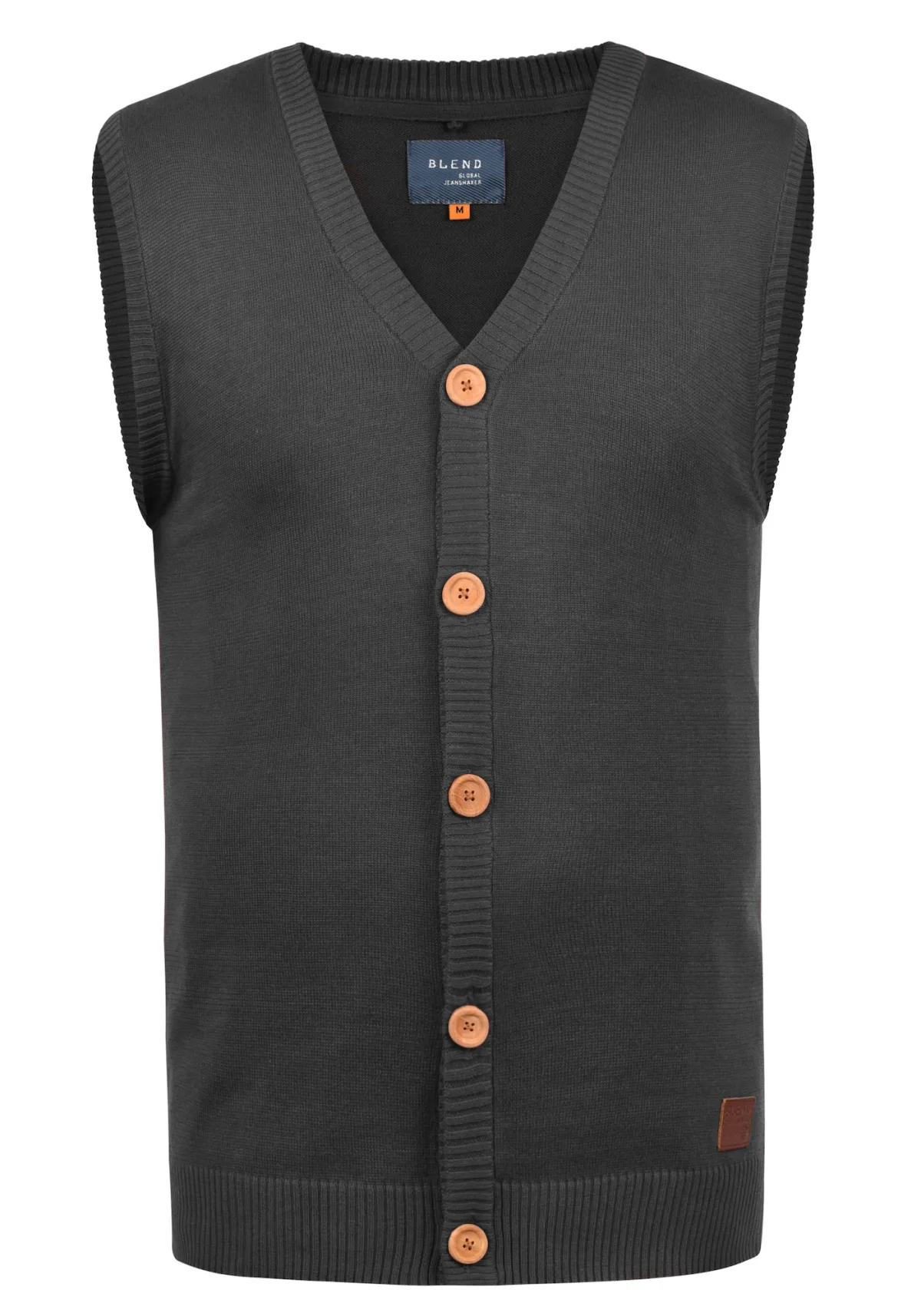 Design: Knop placket; Type sluiting: Knoopsluiting; Voering: Niet gevoerd; Materiaal: Knitwear; Halstype: V-hals; Motief: Effen; Extra's: Label patch/label flag; Pasvorm: Normale pasvorm; Armlengte: Mouwloos; Lengte: Normale lengte