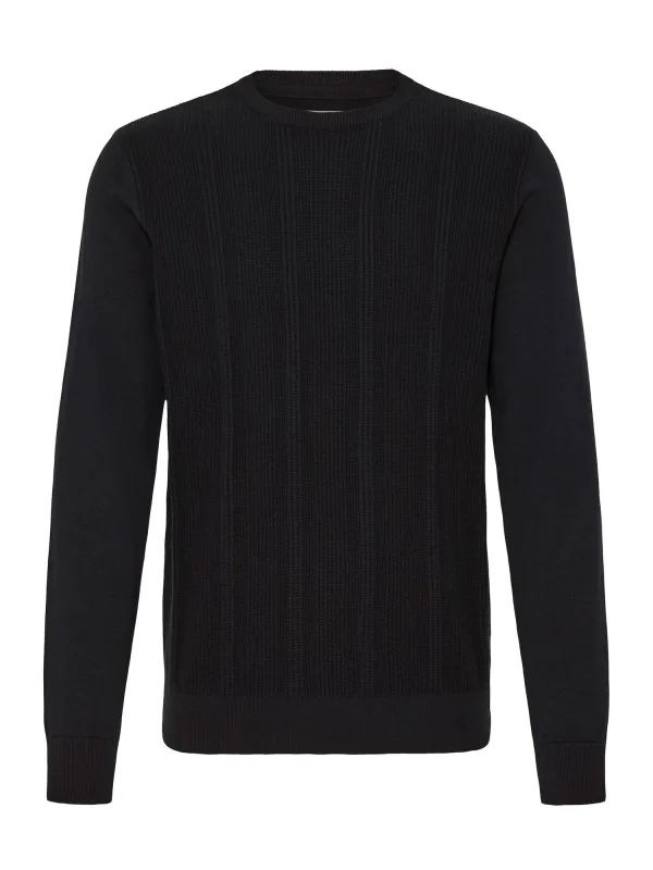 Herenpullover van Blend;Puur katoen;Slim fit;Model 'Baron';tricotlook;Ronde hals;Elastische boordjes;Ruglengte bij maat M: 68 cm;Mouwlengte bij maat M: 68 cm