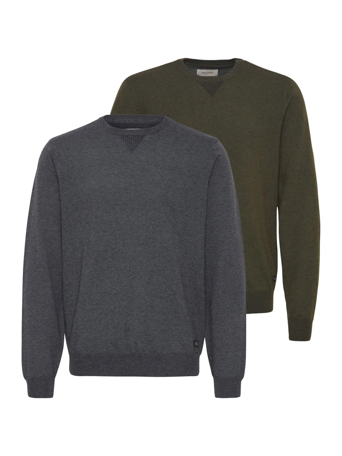 Design: Geribd ceintuurtje; Materiaal: Knitwear; Halstype: Ronde hals; Motief: Mélange; Extra's: Label patch/label flag; Pasvorm: Normale pasvorm; Aantal: 2 Pack; Armlengte: Lange mouw