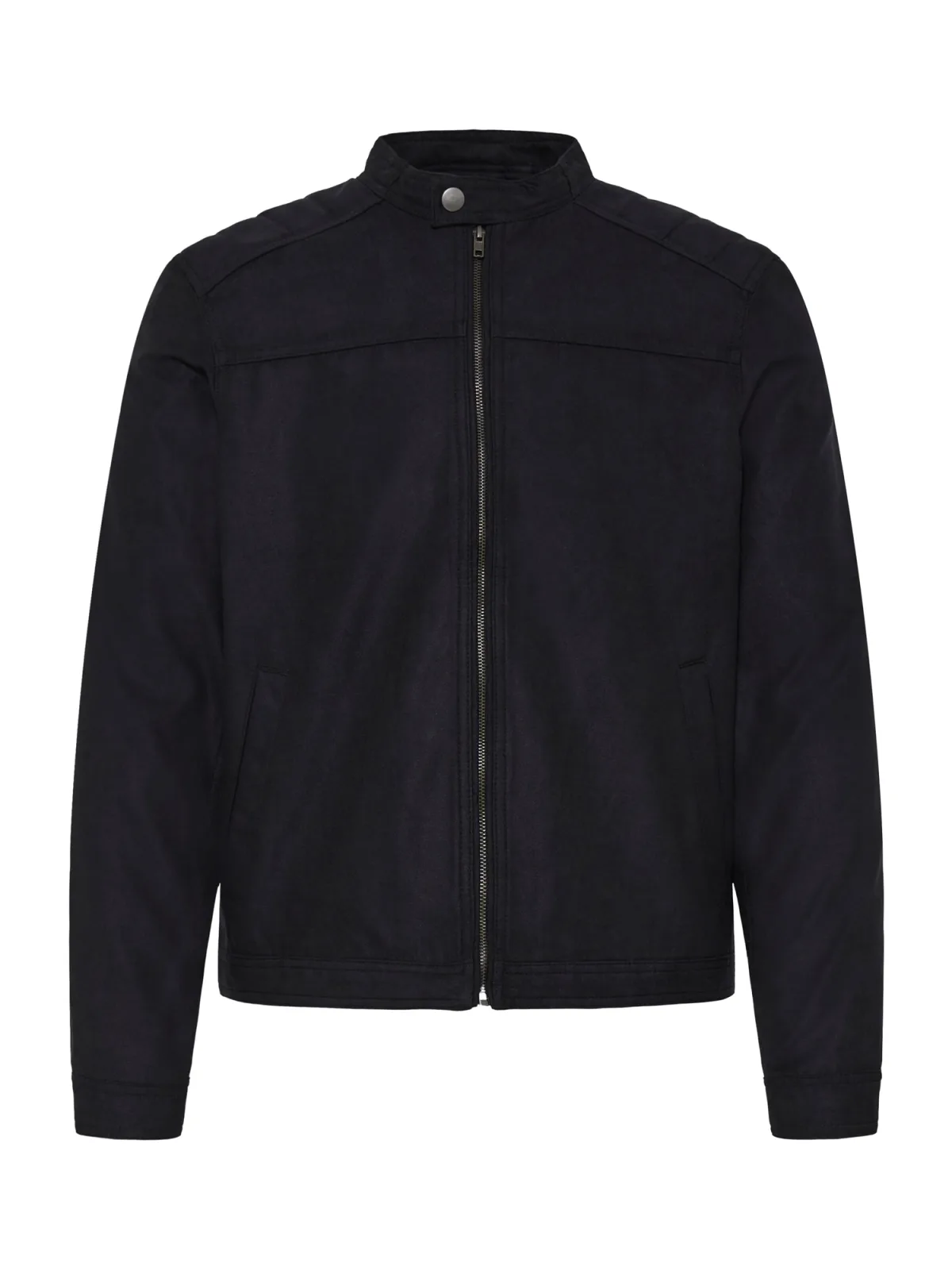 Design: Drukknopsluiting, Staande kraag, Zakken aan de zijkant; Type sluiting: Ritssluiting; Type jas: Bikerjack; Voering: Niet gevoerd; Materiaal: Imitatieleder; Motief: Effen; Extra's: Op staal naden, Velours look; Pasvorm: Normale pasvorm