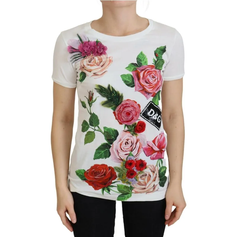 Bloom, betover, breng je garderobe naar een hoger niveau met dit exquisite Dolce & Gabbana t-shirt. Gemaakt van een premium stof, combineert het moeiteloos luxe met dagelijkse stijl. De levendige bloemenprint bevat prachtig geborduurde en aangebrachte rozen, wat een luxueus driedimensionaal effect creëert dat echt opvalt. Een zwart, met pailletten geborduurd DG-logo voegt een vleugje signature Italiaanse flair toe. Het comfortabele ontwerp met korte mouwen zorgt voor een ontspannen maar verfijnde pasvorm, terwijl de onderhoudsvriendelijke constructie het gemakkelijk maakt om in de machine te wassen. Perfect om glamour toe te voegen aan dagelijkse outfits of om jezelf te kleden voor speciale gelegenheden, dit t-shirt belooft de aandacht te trekken.