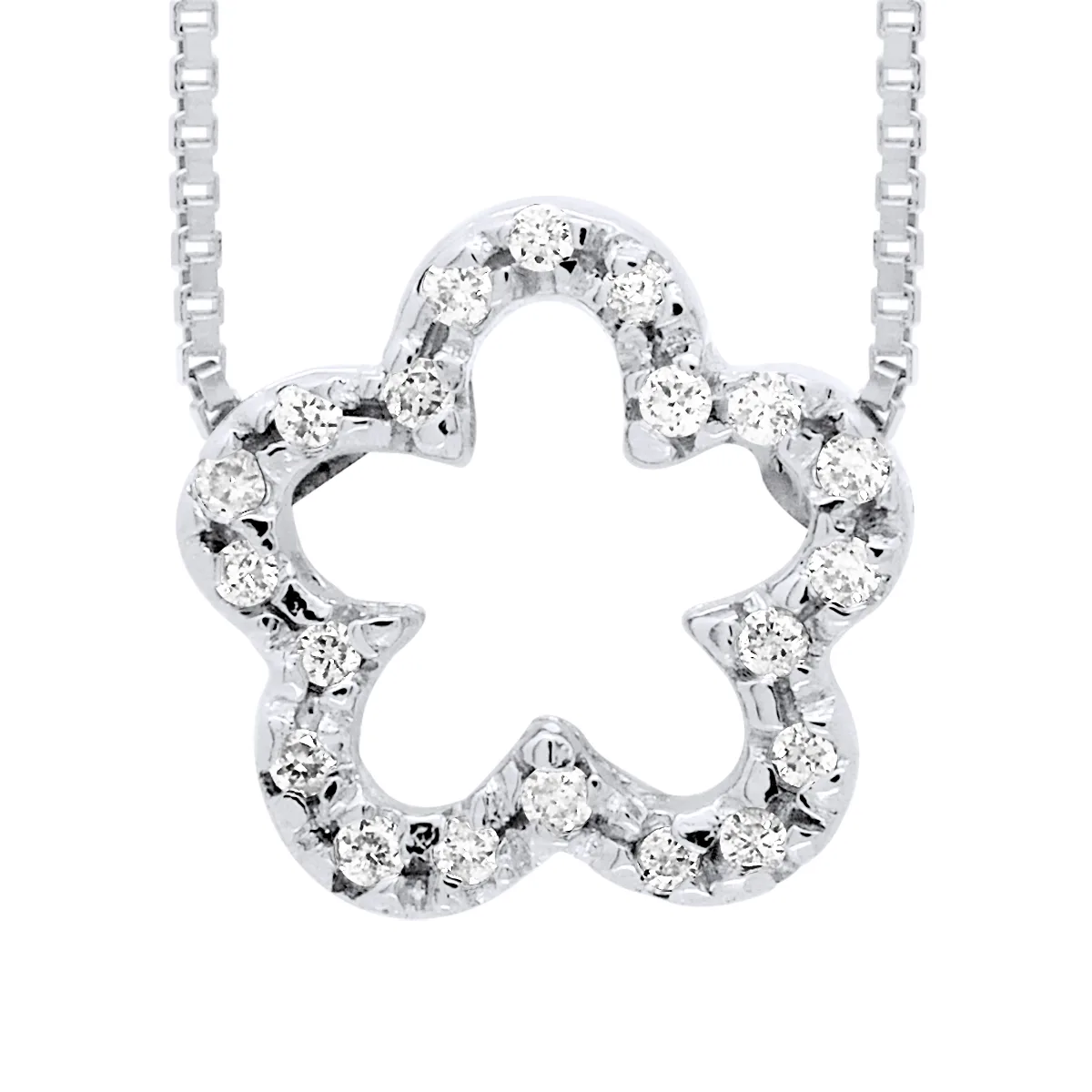 Ketting Flower Diamonds 0.15 Cts - Grootte Glossy - Serti Claws - Quality HSI (kleur H - Quality Si1) - Venetiaanse Chain Lengte 42 cm - White Gold 375 duizendste - 2 jaar garantie - Wordt geleverd in een koffer met een certificaat van echtheid en een internationale garantie - Al onze juwelen zijn gemaakt in Frankrijk.
