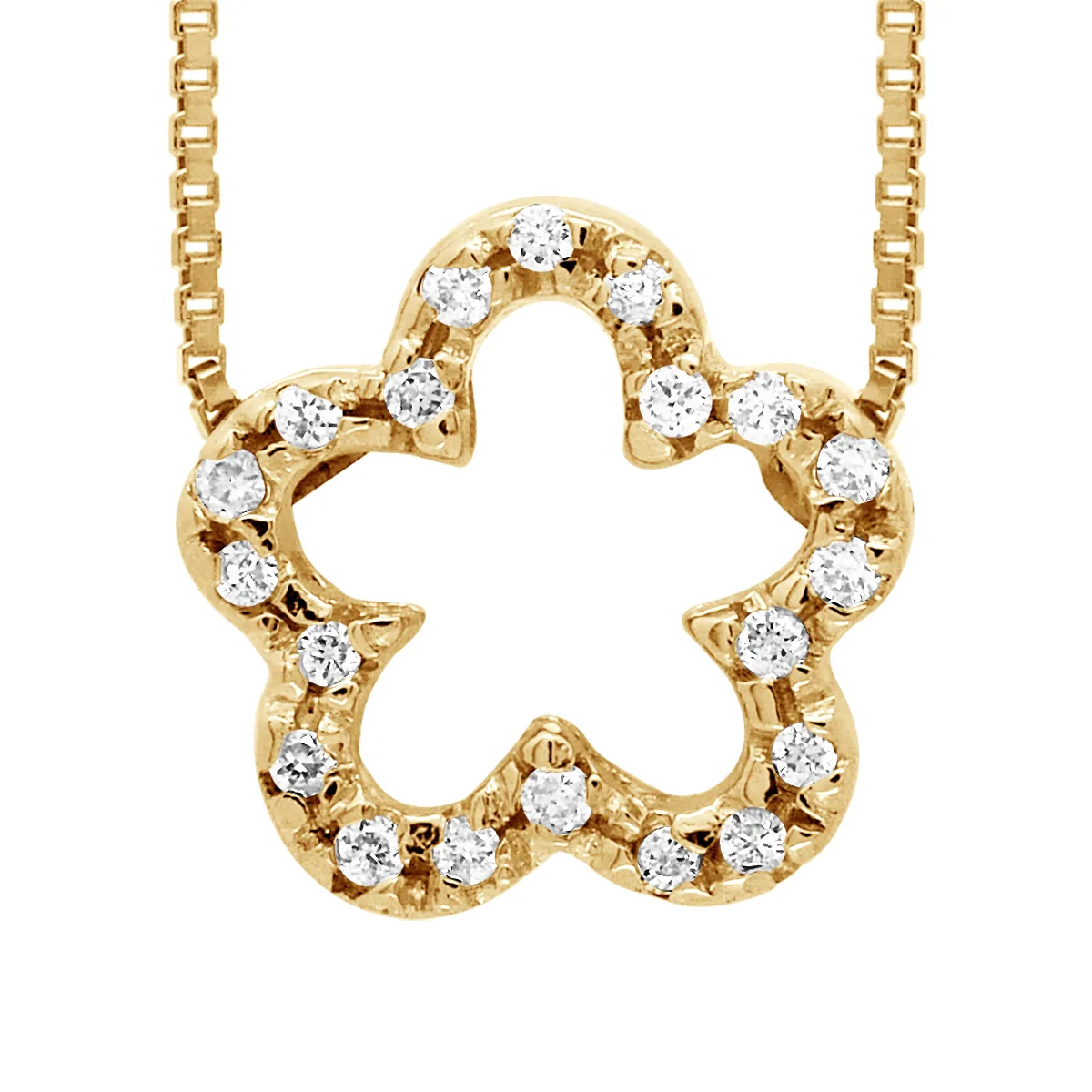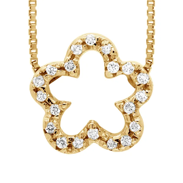 Ketting Flower Diamonds 0.15 Cts - Grootte Glossy - Serti Claws - Quality HSI (kleur H - Quality Si1) - Venetiaanse Chain Lengte 42 cm - Yellow Gold 375 duizendste - 2 jaar garantie - Wordt geleverd in een koffer met een certificaat van echtheid en een internationale garantie - Al onze juwelen zijn gemaakt in Frankrijk.