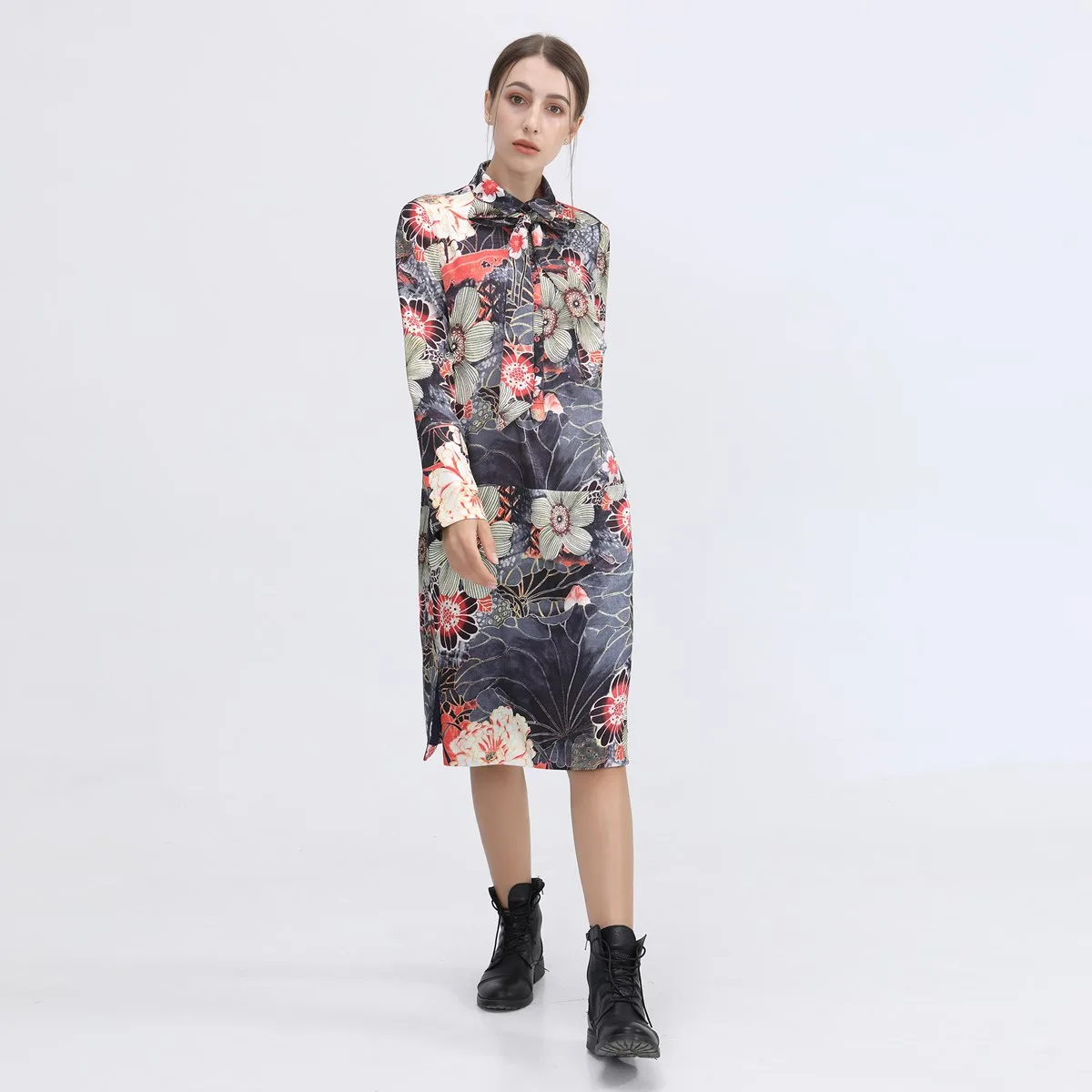Een klassieker in je garderobe; Deze shirtjurk heeft het in een bloemenprint met contrasterende en gestileerde patronen. Een ontspannen look met zijn rechte snit, maar ook verfijnd door het shirtkraag met een knoop. Om te associëren met laarzen en een leren jas voor een romantische "neo-rock" -look of om te worden accessorized met je favoriete stiletto's voor een avond. Productdetails: Rechte vorm Lengte: 103 cm Lange mouwen Shirt kraag met knoop Boutonnage center vooraan