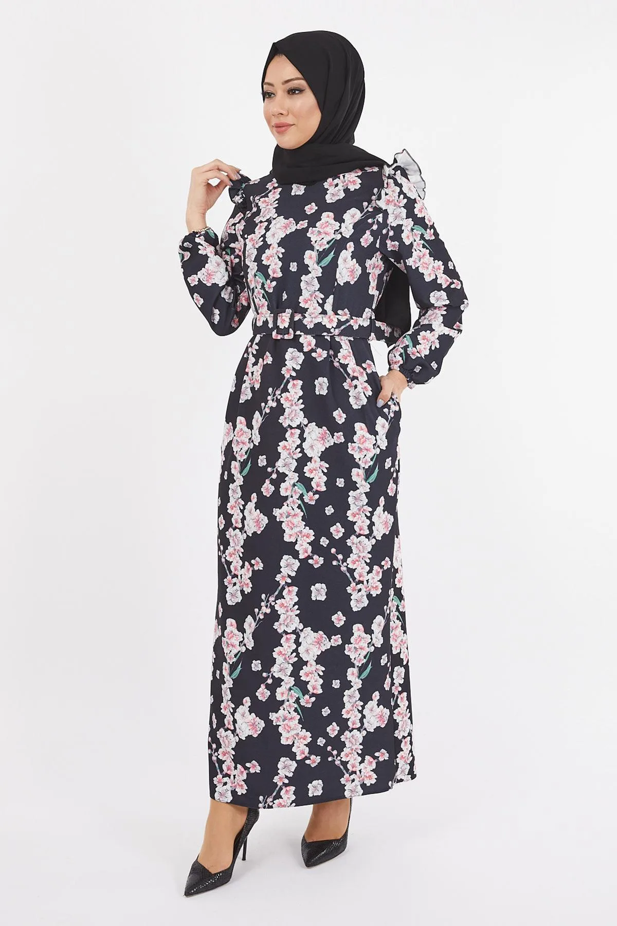Stofeigenschap: Gemaakt van dubbele stof.Producteigenschap: Het is een nieuw seizoen hijab modeproduct. Het is niet gevoerd. Het heeft een rits aan de achterkant en één knoop. De manchetten zijn elastisch. De riem is verstelbaar. Vanwege concept shoots kan er een licht kleurverschil zijn met het product. Het model draagt maat 38. Maat 38 Jurk Afmetingen: Productlengte: 137 cm - Borst: 88 cm -