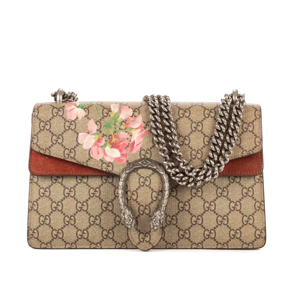 Gucci Tassen Blooms Dionysus Small Schoudertas in de Beige/Bourgondië Gecoat canvas in de Silver hardware. Het product is in In Uitstekende Staat (A). Afmetingen: 27x16x6 cm Inclusief accessoires: None Opmerkingen over de binnenkant: Vervaagde en Verkleurde Suède Opmerkingen over de hardware: Lichte krassen BrandCo Paris vindt zeldzame artikelen in de beste staat voor ongelooflijke prijzen. Het is de moeite waard om geduldig te zijn! Koop met vertrouwen: alle artikelen van BrandCo Paris worden zorgvuldig geselecteerd en geverifieerd door ons team van experts. Alle artikelen worden geleverd met een certificaat van echtheid en verpakt door BrandCo Paris. Classificatietabel voor de conditie van het artikel: N (als nieuw) AA (perfecte staat) A (uitstekende staat) AB (zeer goede staat) B (goede/redelijke staat)