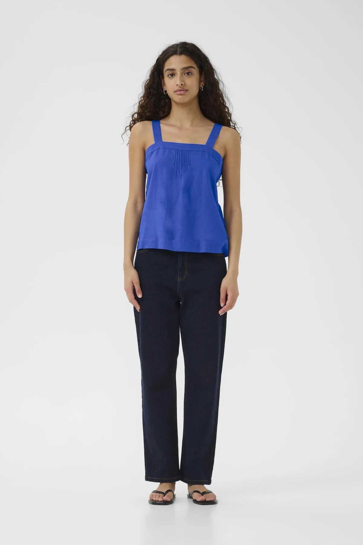 Linnen top met een losse pasvorm, vierkante halslijn en brede bandjes voor comfort. Subtiele plooien aan de voorkant bieden stijlvolle details voor dagelijks gebruik. Fijne was 30°, niet bleken, niet in de droger drogen, Druipnat ophangen in de schaduw, koud strijken max. 110° C, 52% Linnen,48% Viscose