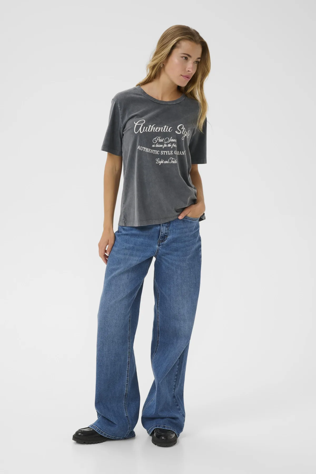Dit dames T-shirt heeft een regular fit en ronde hals, ideaal voor dagelijks comfort. De korte mouwen en opvallende fronttekst geven een eigentijdse uitstraling. Fijne was 30°, niet bleken, niet in de droger drogen, Druipnat ophangen in de schaduw, koud strijken max. 110° C, 100% Katoen