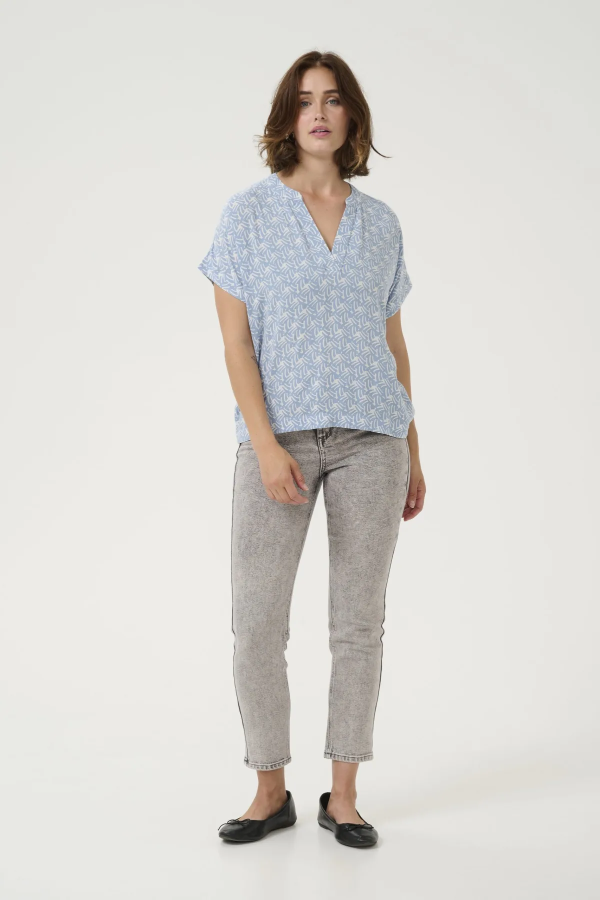 Blouse met korte mouwen Regular fit BlueMoonstruck Print blue white