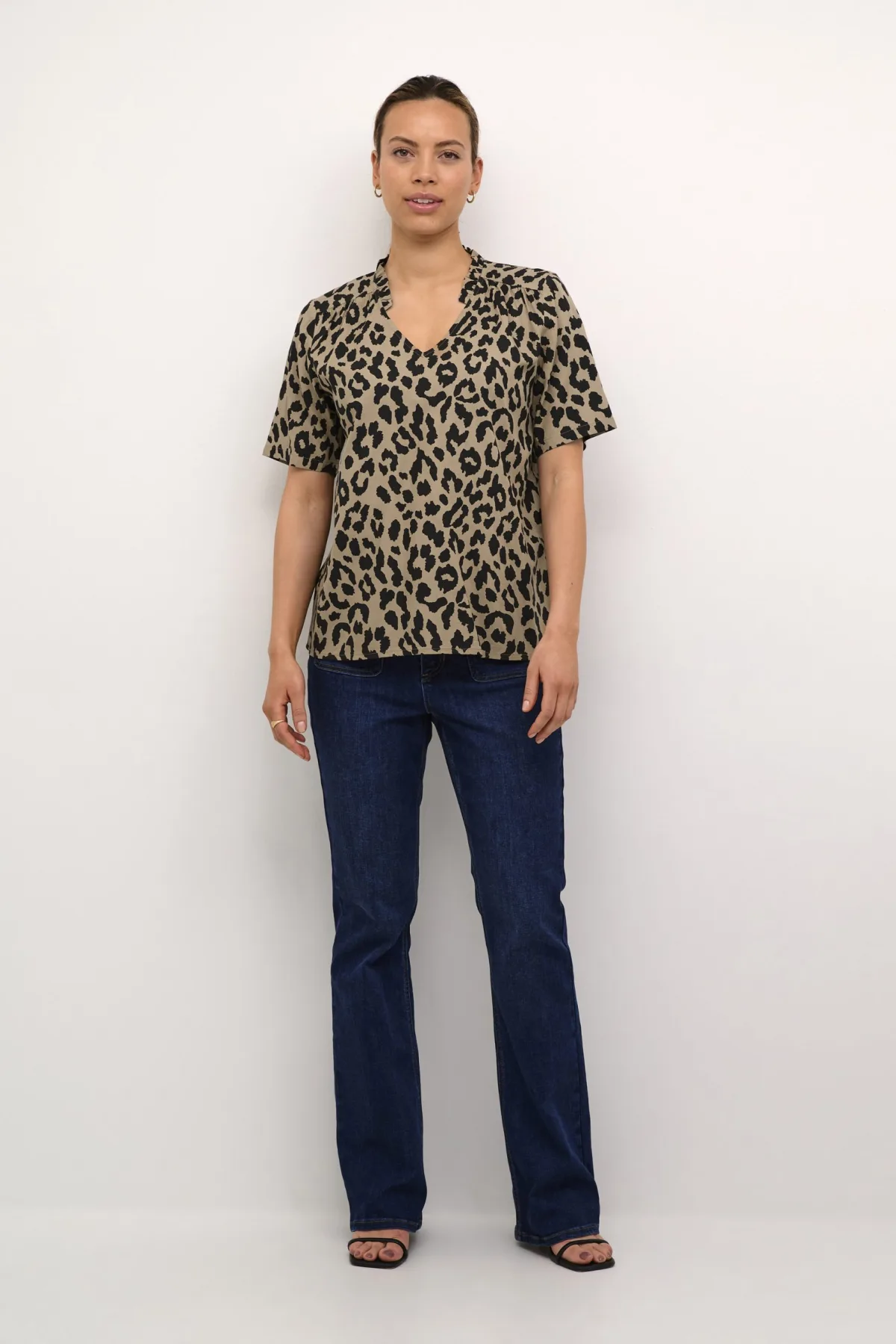 Blouse met korte mouwen Regular fit BrownBlack Animal Print