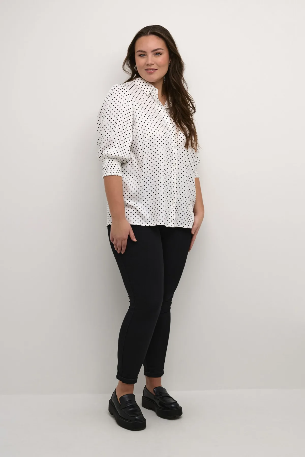 Blouse met korte mouwen Regular fit Chalk/Black Dot white black