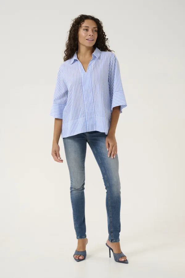 Blouse met korte mouwen Relaxed fit Blue Stripe white Prijzen