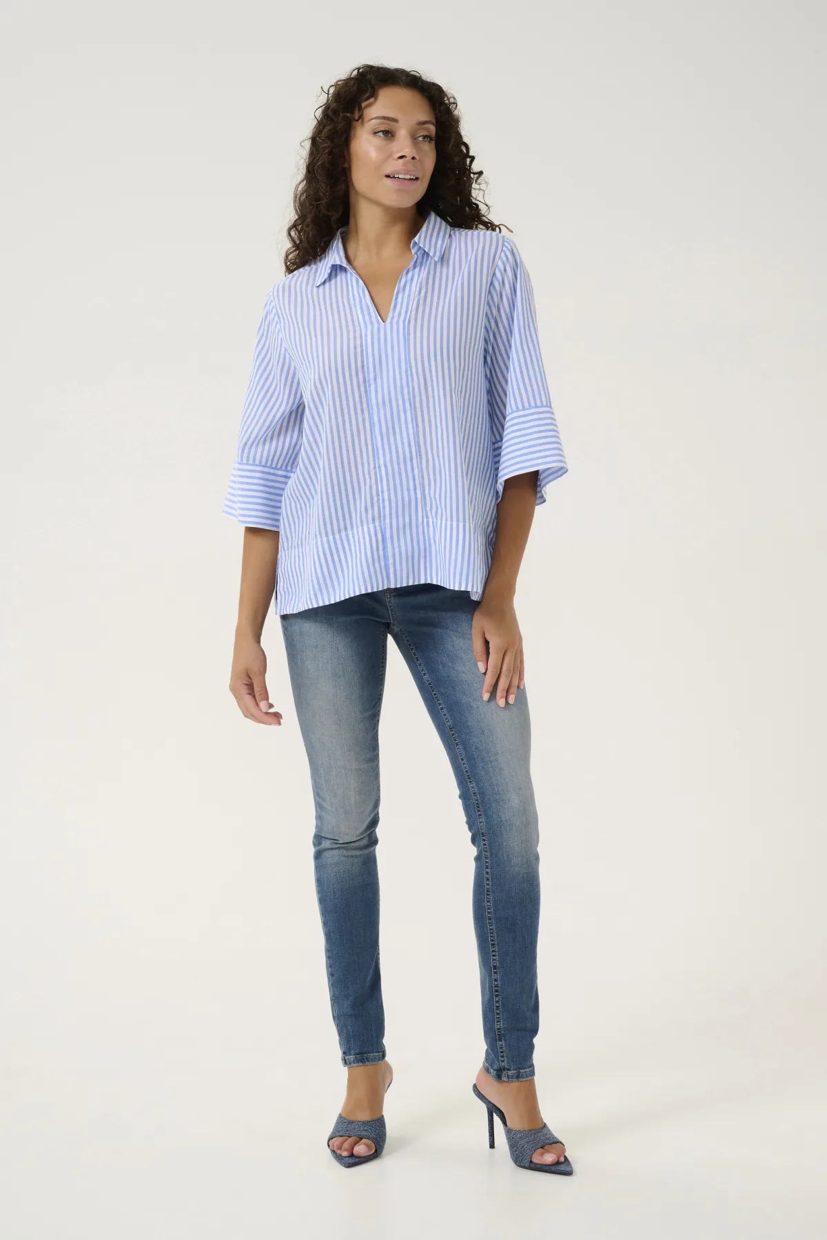 Specificaties: Blouse met korte mouwen Relaxed fit Blue Stripe white