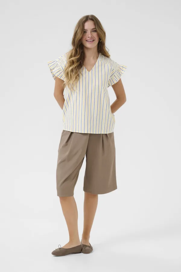 Blouse met korte mouwen Relaxed fit White/Blue/Yellow Stripe Prijzen