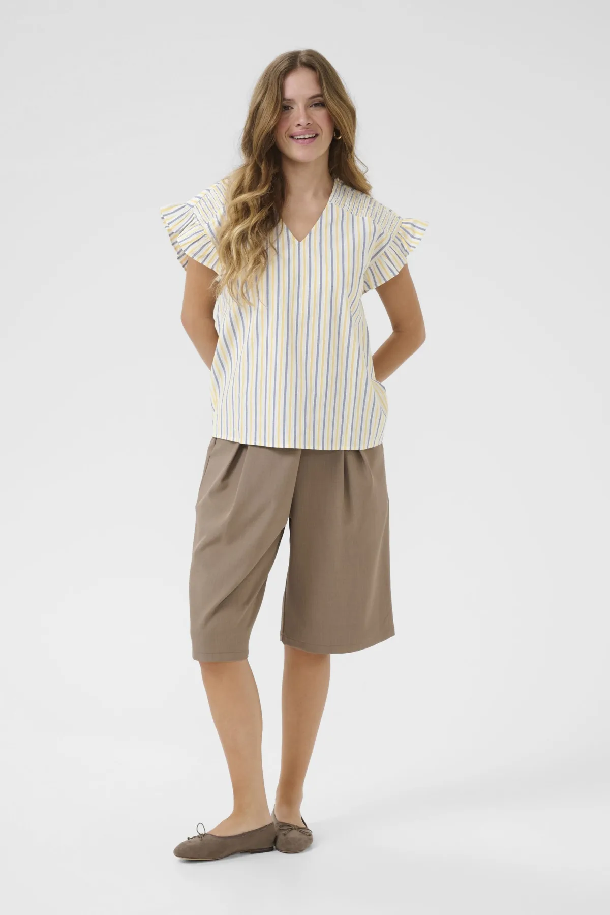 Blouse met korte mouwen Relaxed fit White/Blue/Yellow Stripe