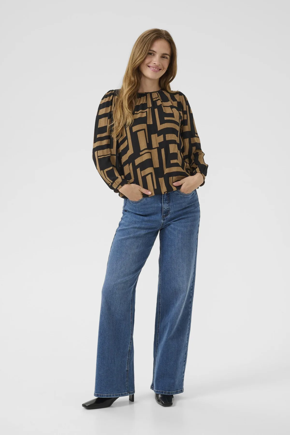 Blouse met lange mouwen KAlorina Regular fit black brown Prijzen