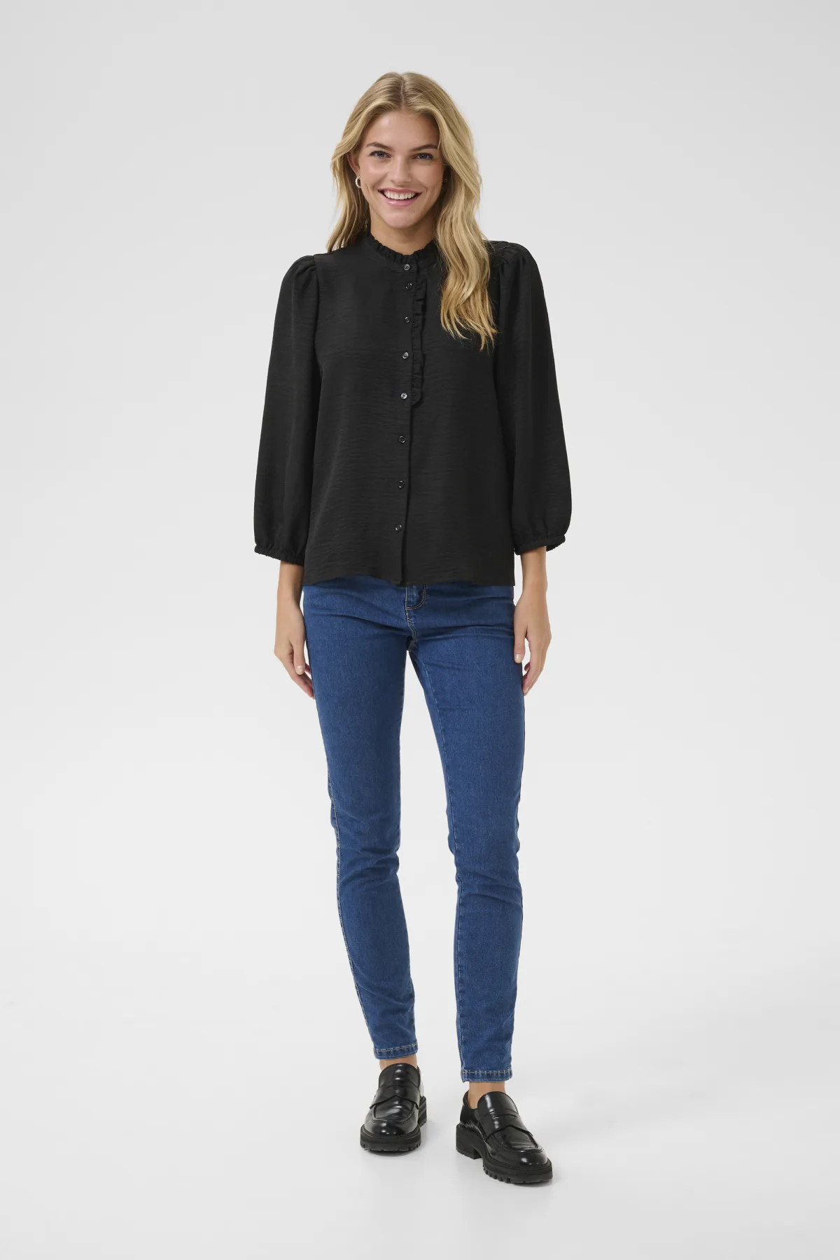 Blouse met lange mouwen Regular fit Black