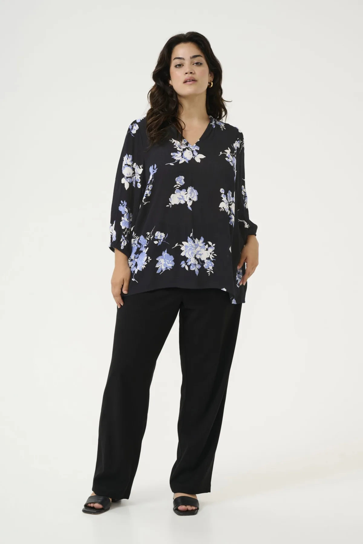 Blouse met lange mouwen Regular fit Black / Blue Flower Print