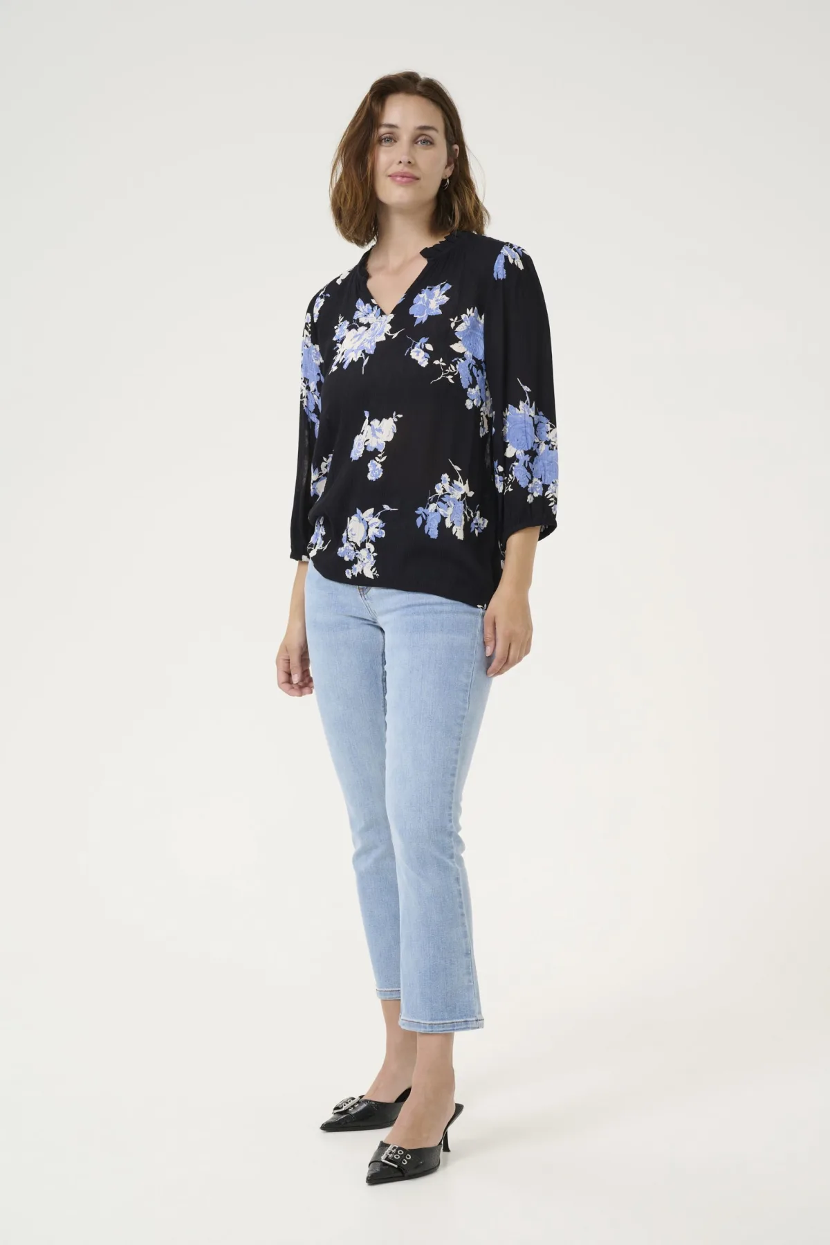 Blouse met lange mouwen Regular fit Black / Blue Flower Print Prijzen