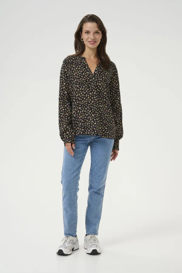 Blouse met lange mouwen Regular fit Black/Brown Graphic Dots