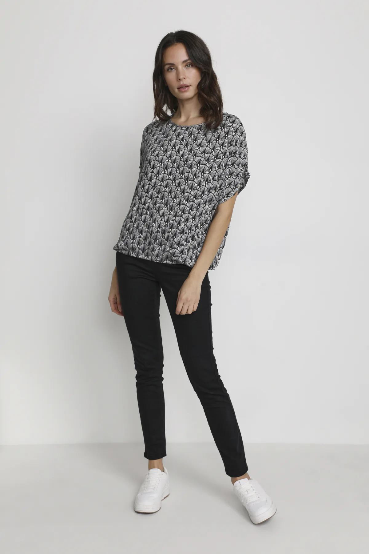 Specificaties: Blouse met lange mouwen Regular fit Black/Chalk/Rose Fan Print black multi