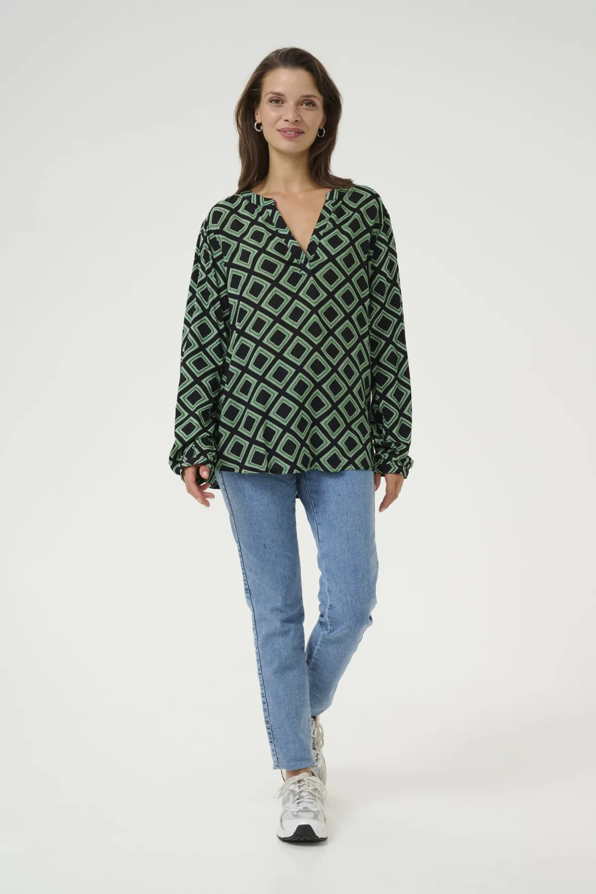 Blouse met lange mouwen Regular fit Black Deep/Green Geometric