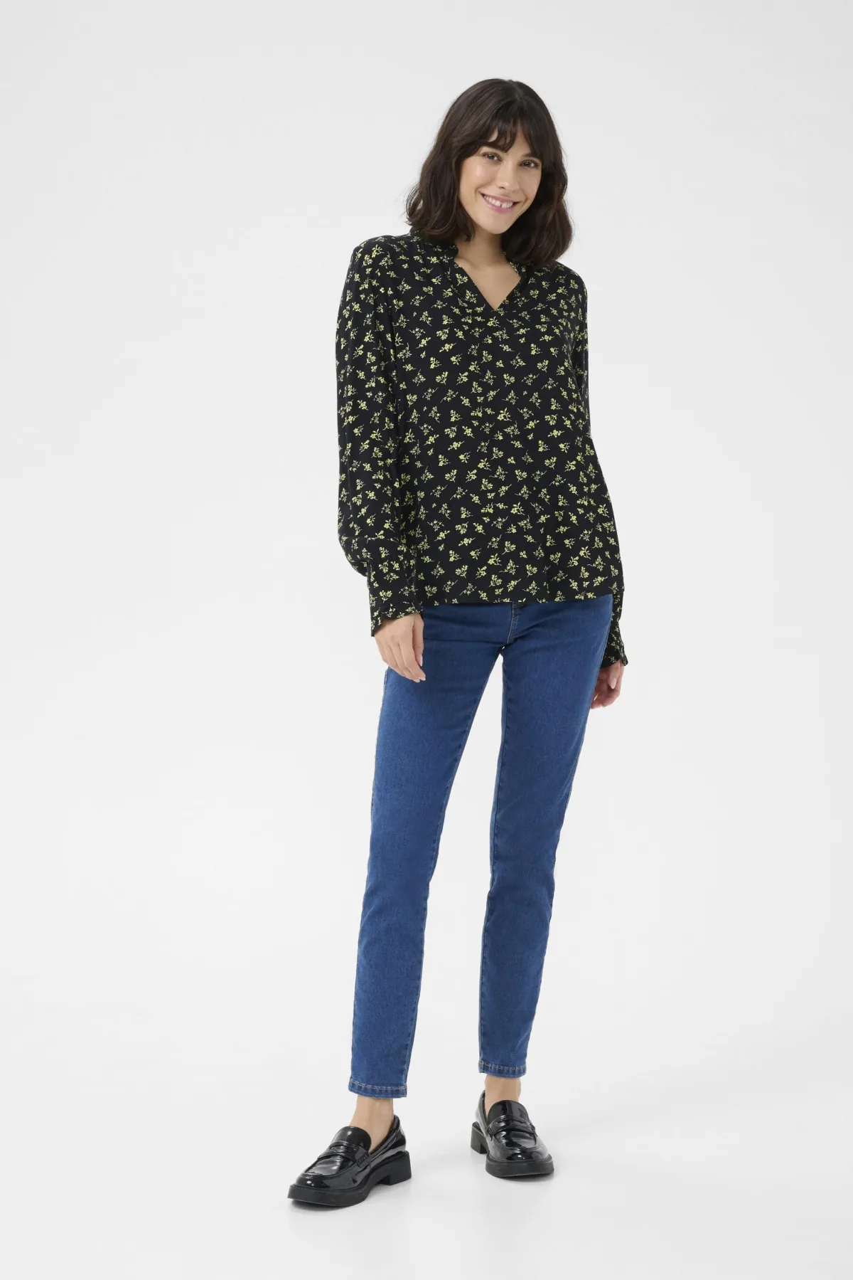 Blouse met lange mouwen Regular fit Black/Green Lettuce Ditzy