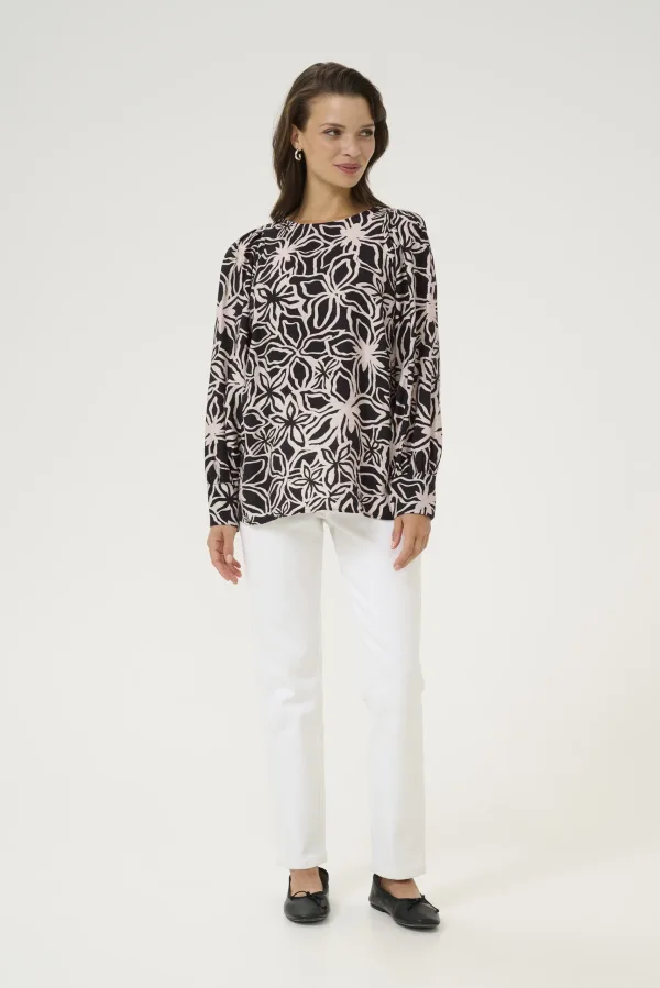 Blouse met lange mouwen Regular fit Black / Light Beige Flower Prijzen