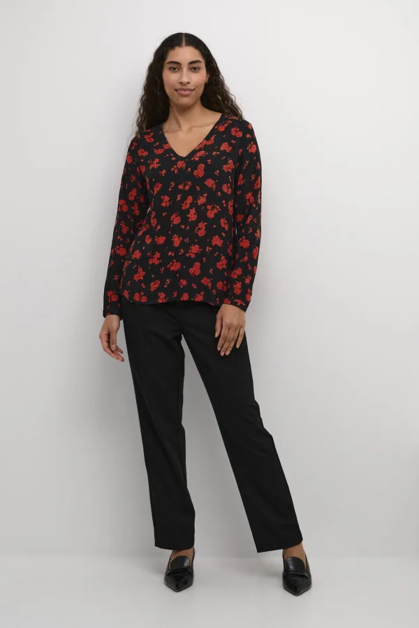 Specificaties: Blouse met lange mouwen Regular fit Black_Red Flower Print