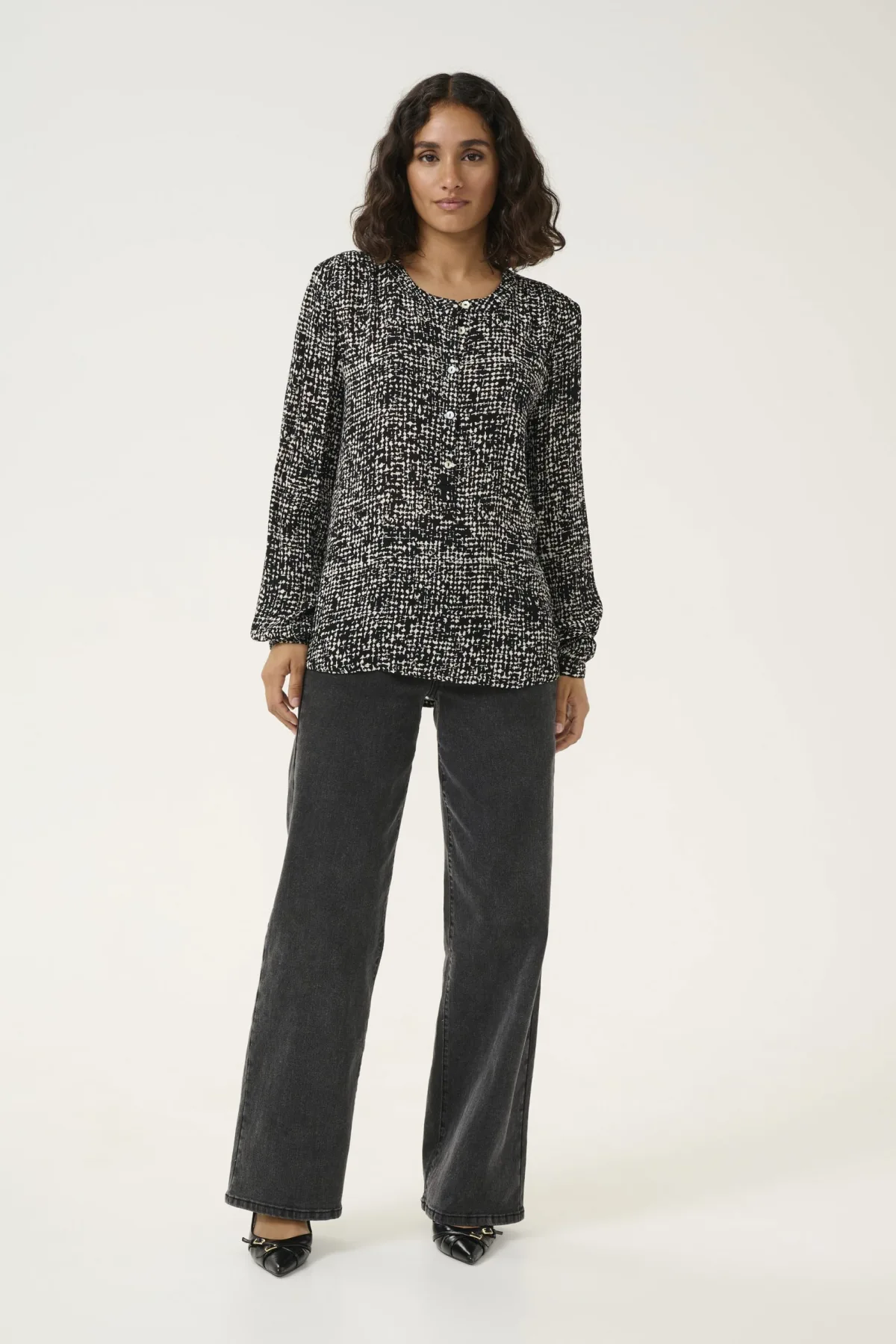 Blouse met lange mouwen Regular fit Black/Turtledove Graphic Dot Prijzen