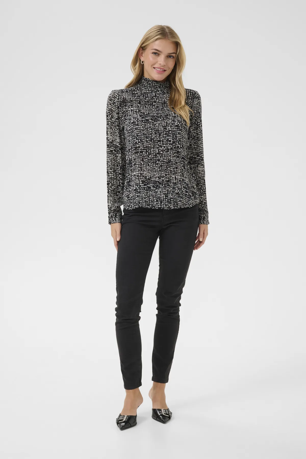 Blouse met lange mouwen Regular fit Black/Turtledove Graphic Dot black white