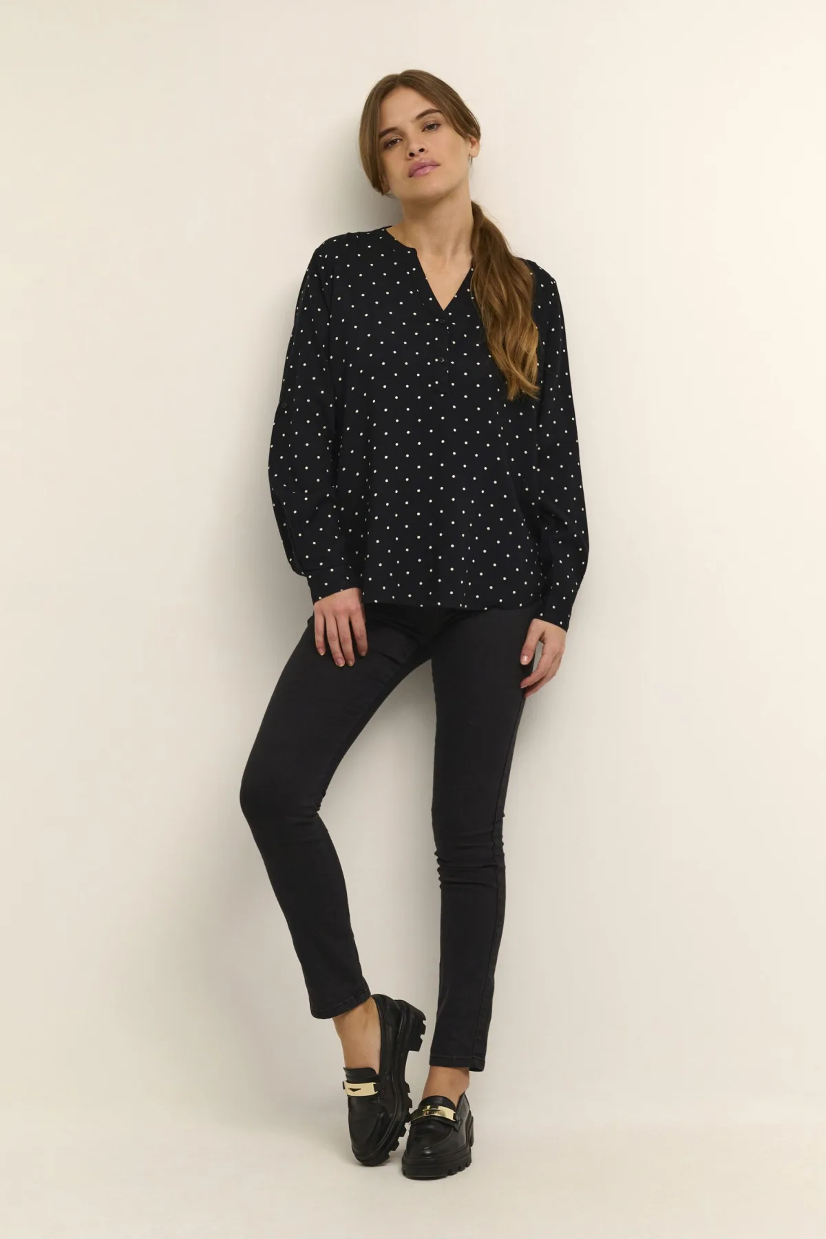 Blouse met lange mouwen Regular fit Black/White Dot Prijzen
